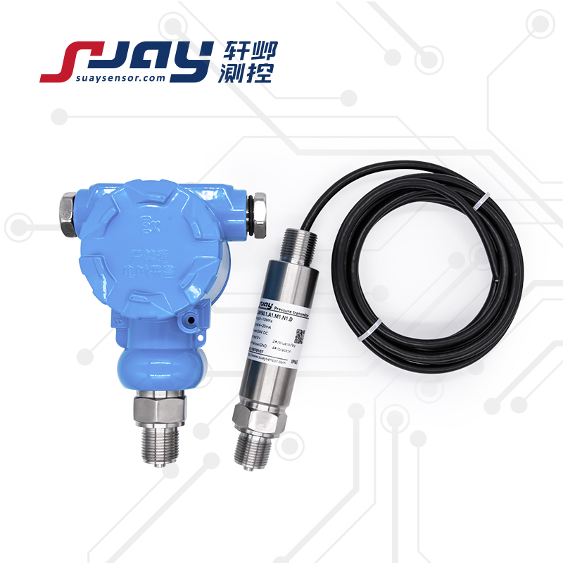 SUAY60榔头型压力变送器选用进口高性能固态压力传感器,使用全不锈钢或铸造一体式外形,精密的焊接、装配工艺,经过严格的测试、老化过程,充分保证了产品质量的精度和坚固性、稳定性、耐用性。该系列产品可测量负压、绝压及表压类压力,量程覆盖-100KPa至200MPa的压力区间,可供用户根据工况按需选择。内置具有短路保护、反极性保护和瞬间过电流保护的信号处理电路,极大提高了本身的安全性,可输出多种标准电压电流及数字信号。该款产品分为本安型和隔爆型,是专为高爆炸危险测压环境所设计的压力变送器,可选装防爆软管接口螺纹(M20*1.5或G1/2),广泛应用于工业过程控制、冶金、电力、化工、矿井、锅炉、天然气、油田及煤矿等领域。